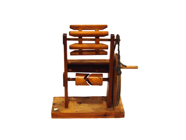 前のデータ 一覧へ戻る 次のデータ 座繰 基本番号3002216 基礎データ 基本番号3002216 大分類生産・生業 中分類染・織 小分類製糸用具・施設/木綿 名称座繰 ふりがなざくり 通称ザクリ 寸法奥行:16.0 巾:44.0 高:50.0 状態等 製作者・製作所 寄贈・寄託採取地 重信町 墨書・焼印・印刷物等墨書:「横河原昭和八年一月高橋氏」 用途糸に撚りをかけたり、機織の縦糸とする糸を管に巻き取るのに用いる手動式の回転車。 写真 写真をクリックまたはタップすると拡大写真をご覧いただけます。 前のデータ 一覧へ戻る 次のデータ